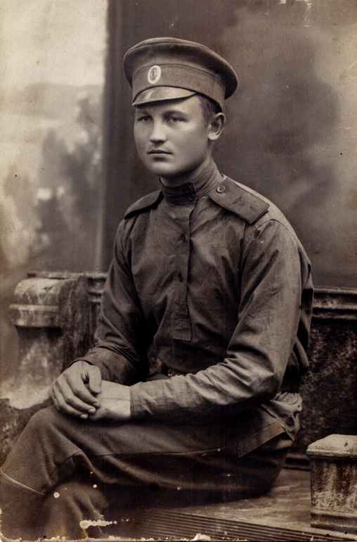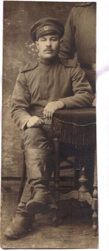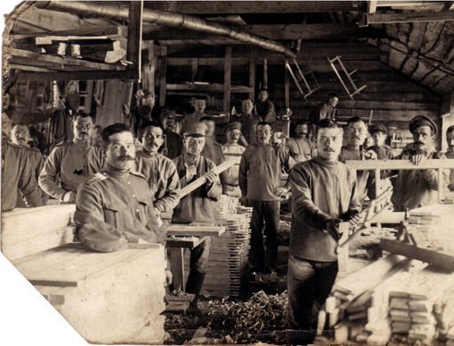 Tagaküljel: Juhan Rahnel Venemaal (puutöökojas) sõjaväes olles.