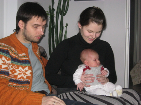 Kõige noorem "Sinise klubi" liige Miina Pikkov isa ja emaga 2009.a. alguses